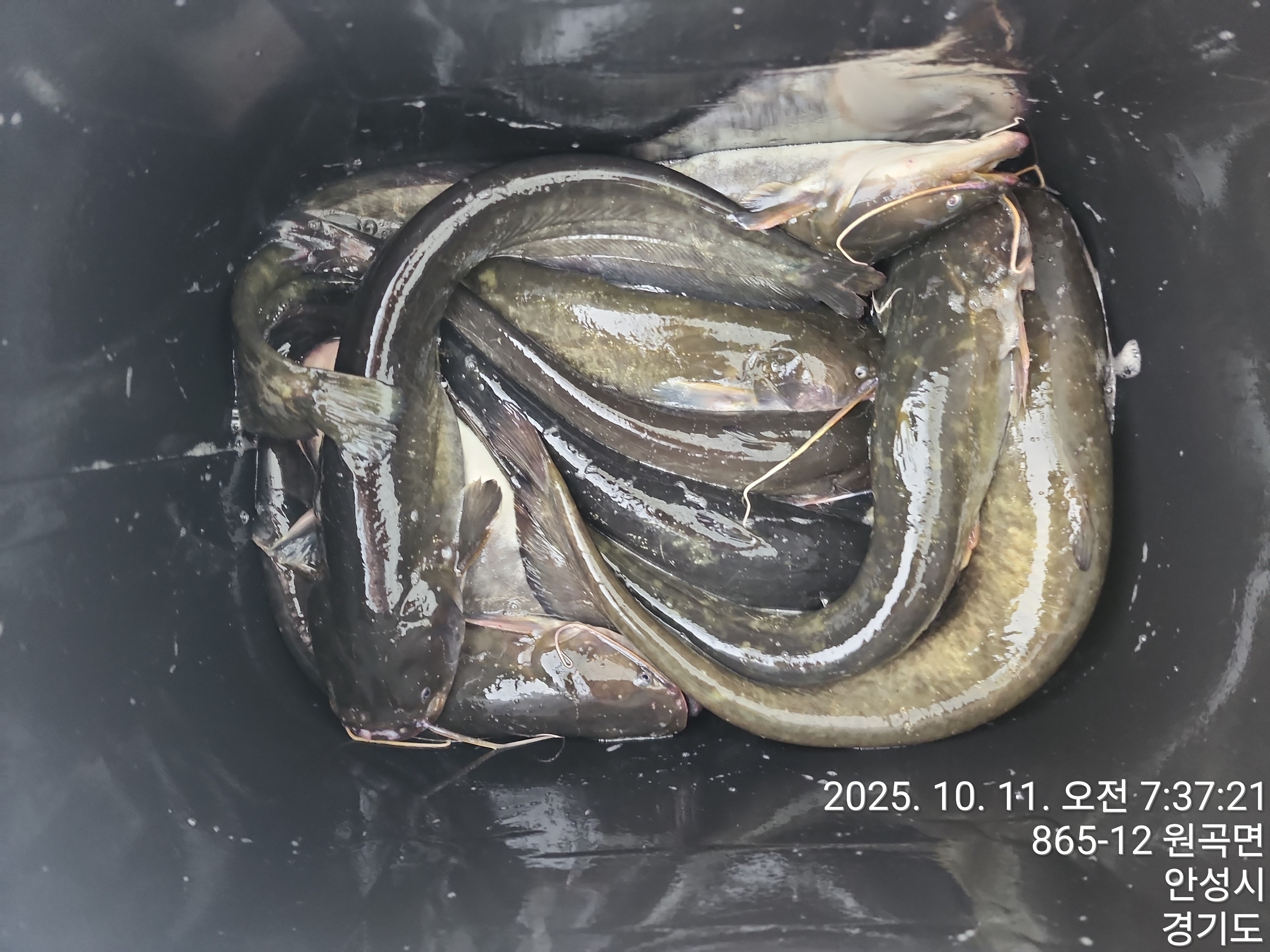 메기와 함께 방류된 동자개입니다 장어다음으로 비싼 고기지요~~~