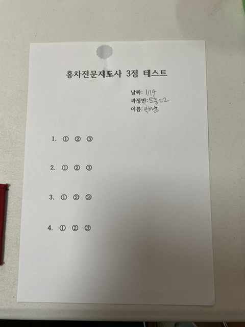 저는 테이스팅이 끝나자마자 재빨리 답을 적었습니다.