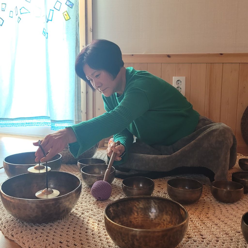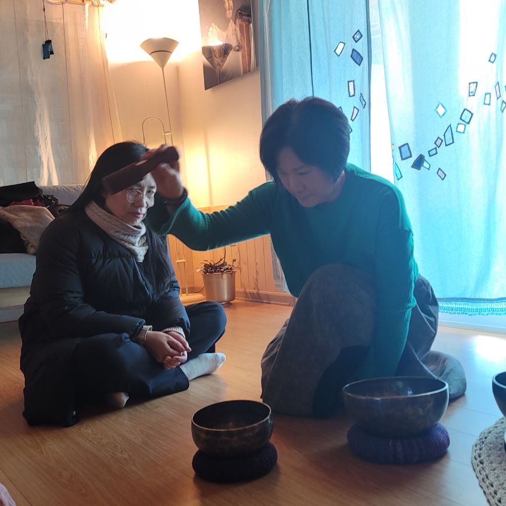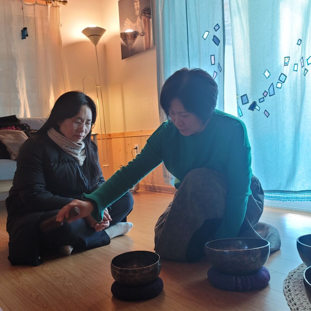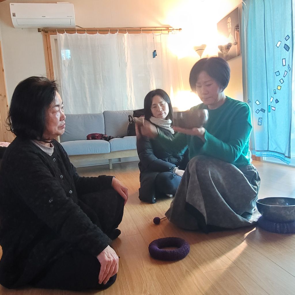 싱잉볼 소리가 더 흡수될수 있도록 명상준비를 한다
