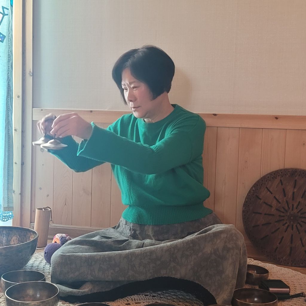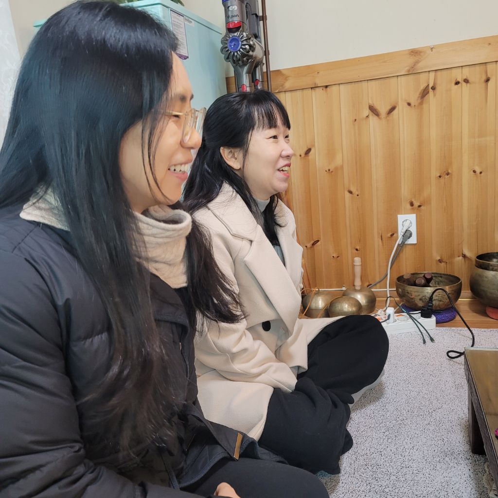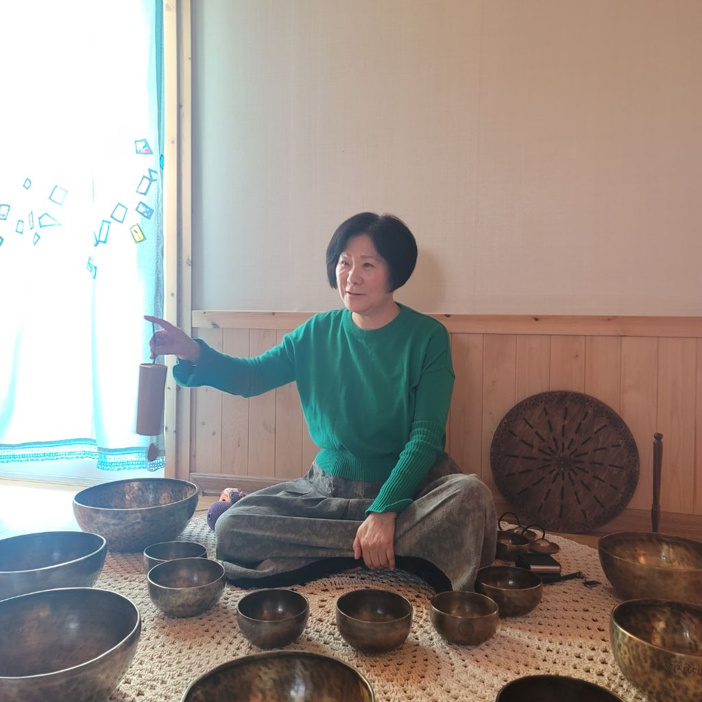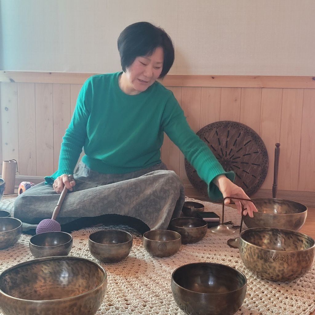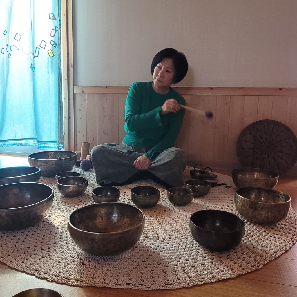싱잉볼 소리가 더 흡수될수 있도록 명상준비를 한다