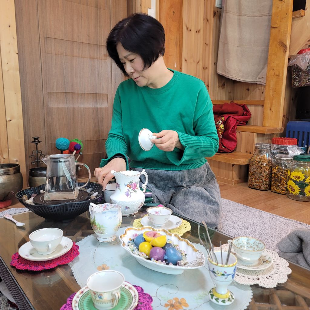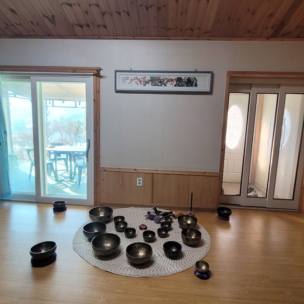 집안 내부에는 각양각색의 꽃차와 노래하는 그릇~싱잉볼과 침향이 앙상블을 이루고 있다.