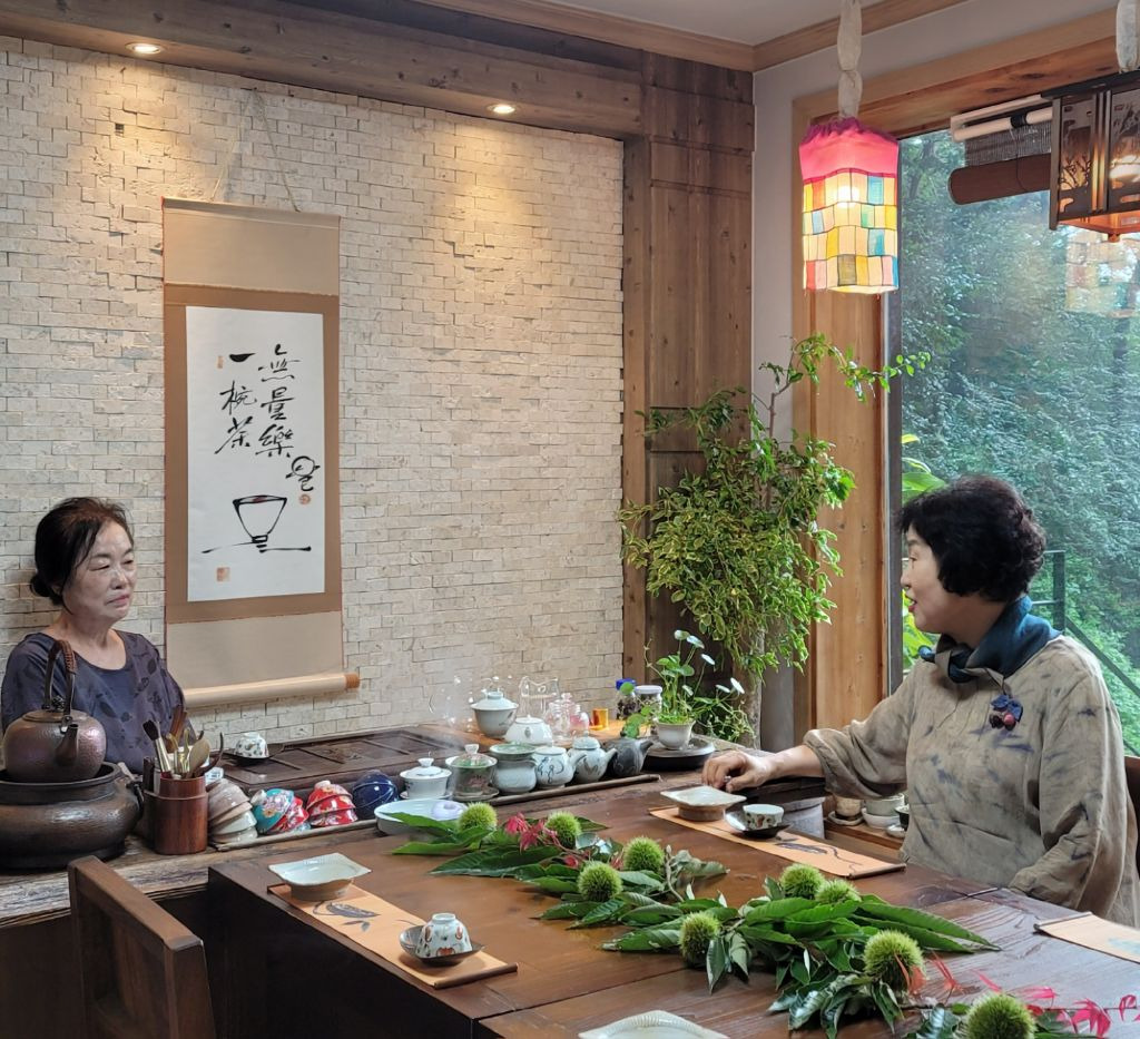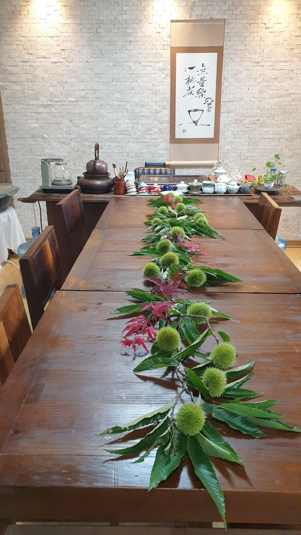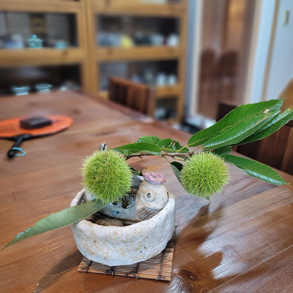 그 바람에 초록색 밤송이를 마주하며 차를 마시니 고아한 정취가 아닐수 없다.
