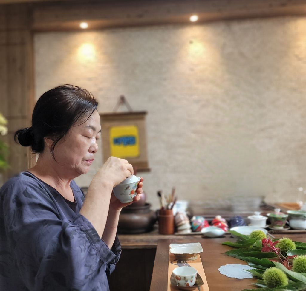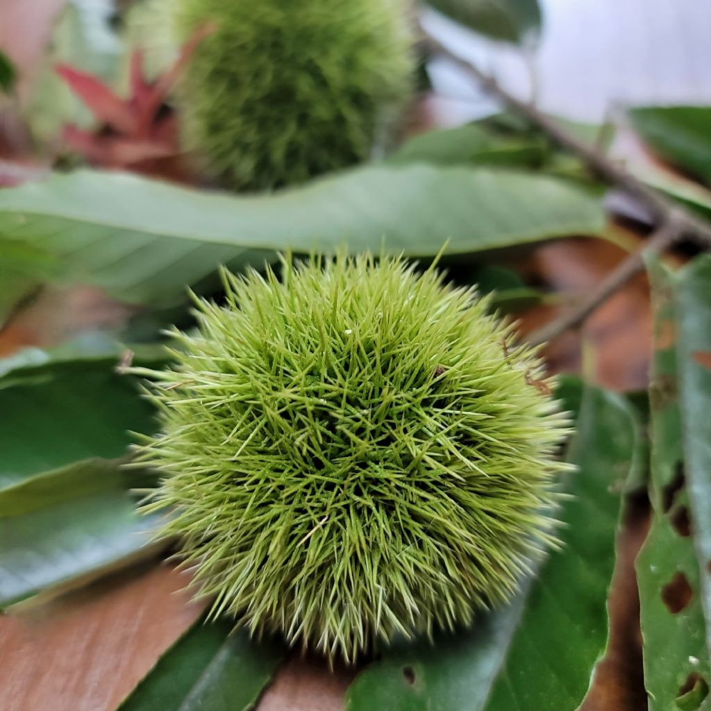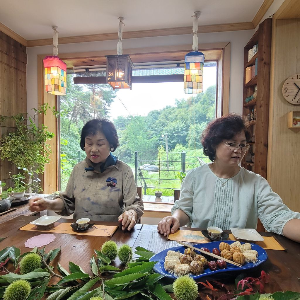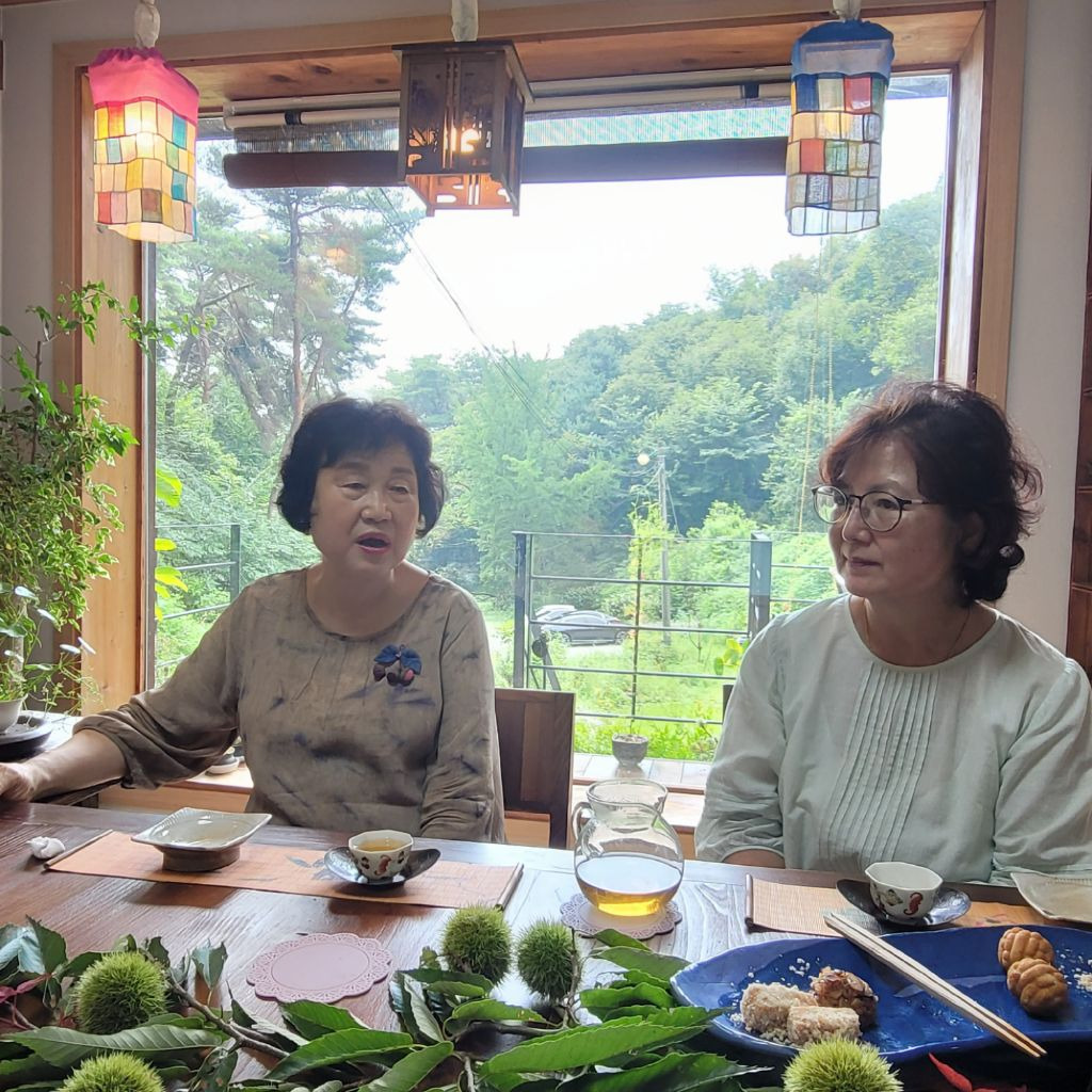 그 바람에 초록색 밤송이를 마주하며 차를 마시니 고아한 정취가 아닐수 없다.