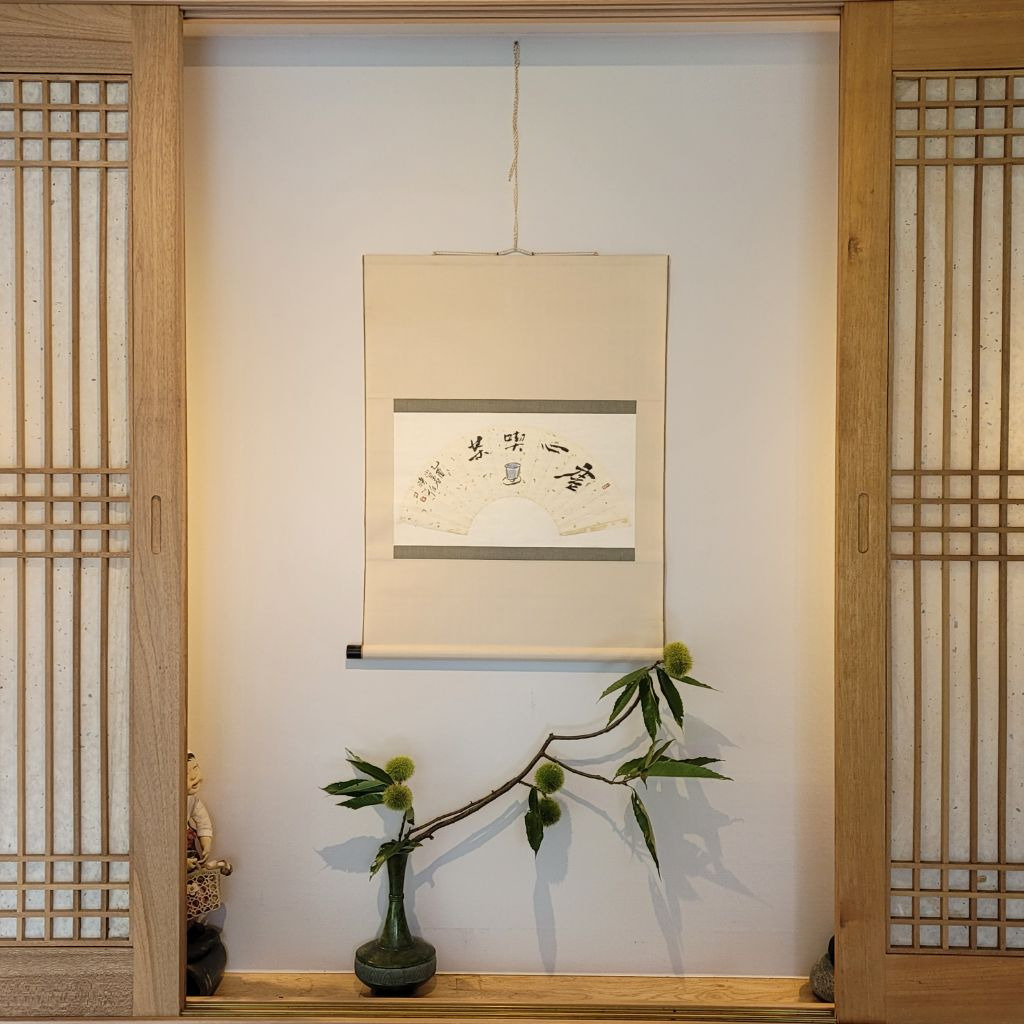밤송이가 다화로 장식된 다심원 메인 차실은