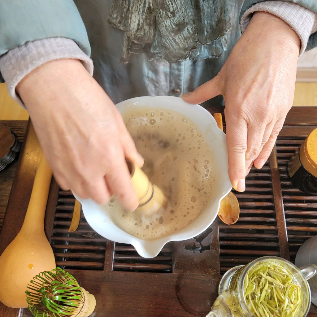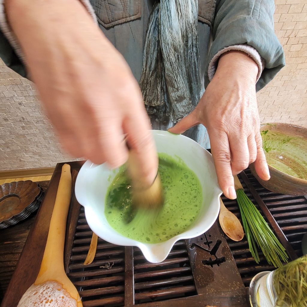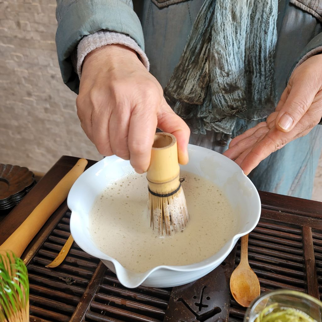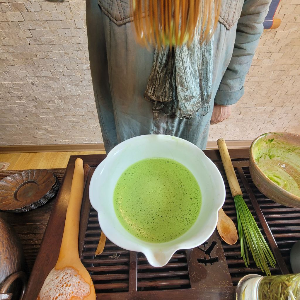 텅빈 말차완으로 들어와 앉는다.