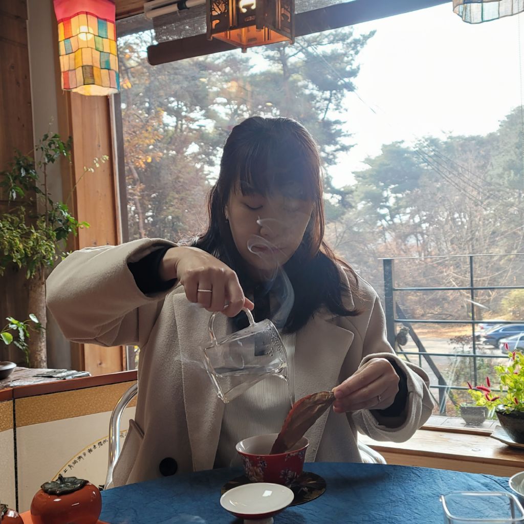 흔들흔들~ 말차와 만난 침향차를 한모금 머금다가 목넘김하니 온몸에 전율이 흐르는듯 차가 스몄다.