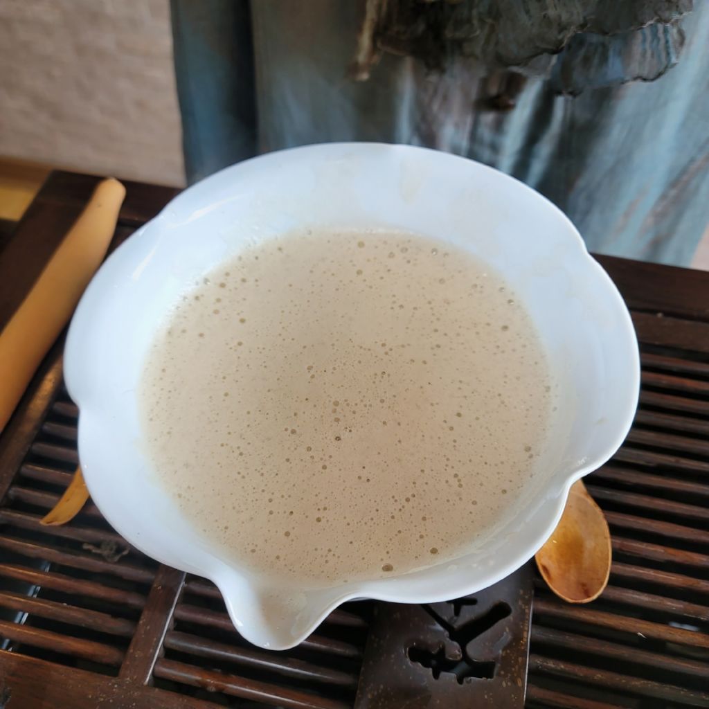 여기에 크림처럼 격불된 침향차를 따른다.