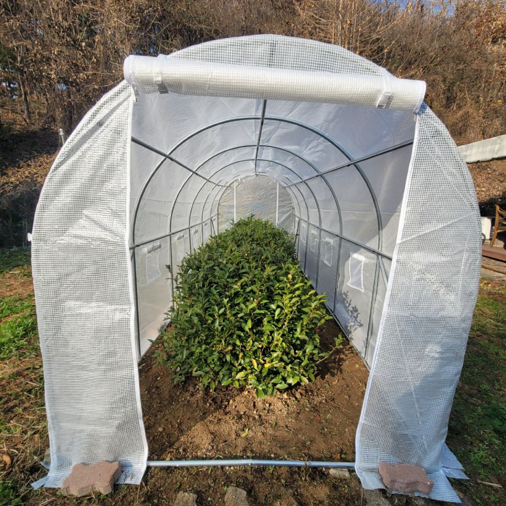 새롭게 증축된 비닐하우스에 녹차나무들이