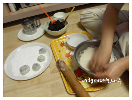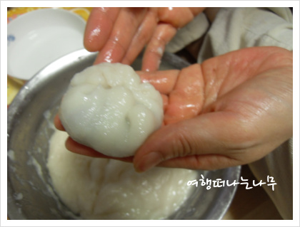 반죽이 손에 달라붙지 않게 물을 묻혀가며 만드는 것이 요령!!