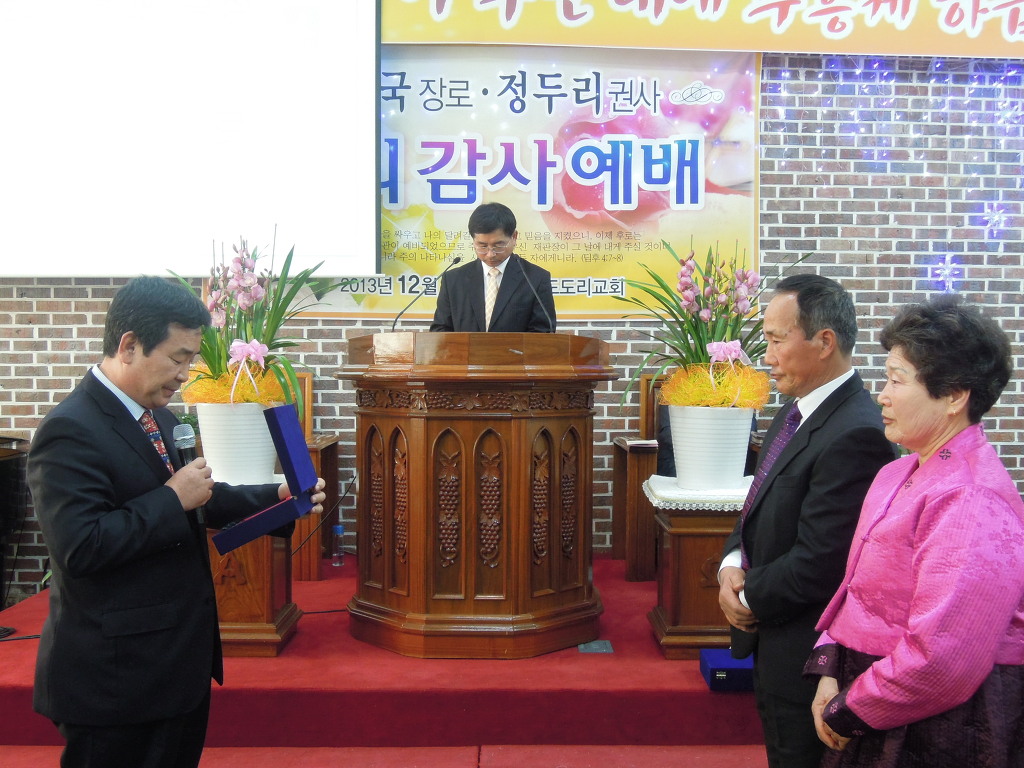 정권사님도 이장로님과 결혼하면서 45년을 한결같은 믿음으로 함께 사역하며, 식당에서 봉사하며, 과거 어려운시절에 교역자님들을 대접하며 온갖 궂은일을 마다하지 않고 사역을 감당하셨고 부부가 함께 새벽기도를 거의 빠지지 않고 교회를 위하여 평생을 기도하며 헌신해 왔습니다. 이장로님.정권사님 참으로 그동안의 노고에 감사를 드리며 하나님의 보상과 축복이 함께 하시고 건강하시고 은혜 충만한 가운데 도도리교회를 위해서 끝까지 함께하시고 기도하며 후배들에게 격려하면서 하나님의 사랑받는 장로님 가정이 되시길 기도 드리겠습니다.