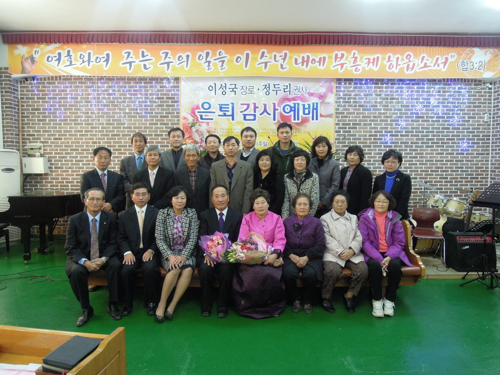 오늘 이성국장로님과 정두리권사님의 은퇴예배를 하나님의 은혜가운데 드렸습니다