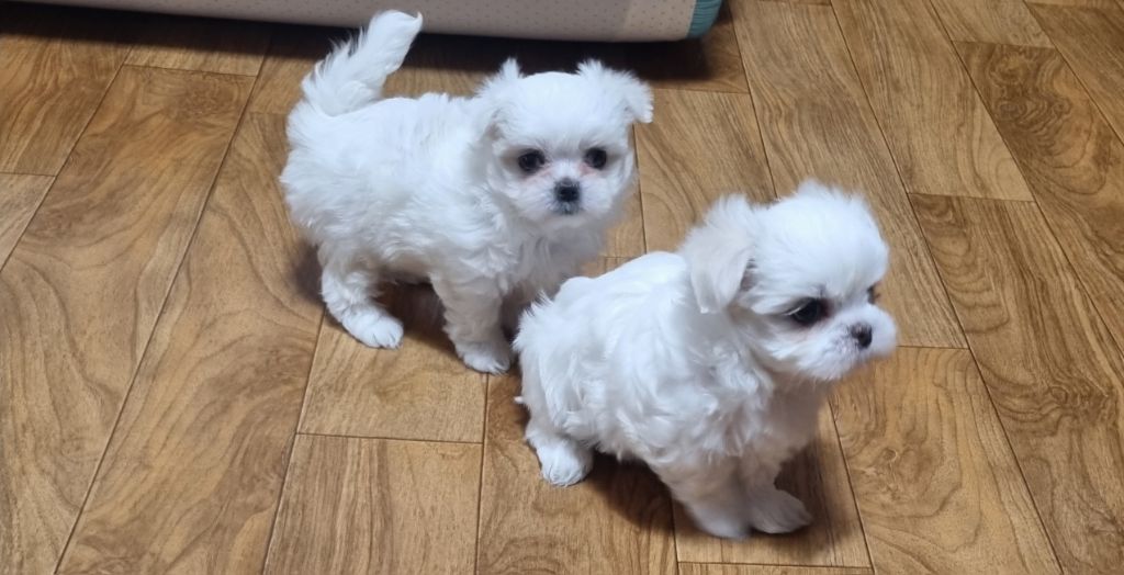 말티즈 2025년 1월 ㅣ8일 새벽 4시30분에 5마리 태어 났으며 마지막 태어난 5섯째 막내가 약하게 태어나 2틀만에 무지개다리 건너갔고 남은 4마리는 건강하고 예쁘게 잘자라고 있으며 이제는 뛰어다니기도 하고 뽀뽀도 해주며 대,소변도 패드판에 가리는 시늉도하고 재롱도 많이 부리고 있답니다 하는짓이 너무너무 예쁘고 무척 귀여워요 첫째는 순하고 둘째는 활달하고 셋째는 사람옆에 있기들 좋아하고 넷째는 애교가 말도 못합니다 이렇게 성격이 다 틀리고 너무 귀엽고 예쁘답니다