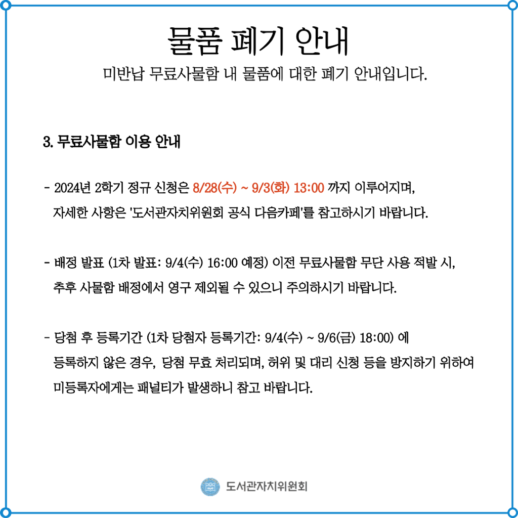 미반납 무료사물함 내 물품 폐기에 관한 안내입니다.