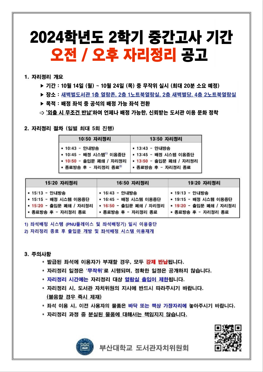 ❗️2024학년도 2학기 중간고사 자리정리 실시 안내 ❗️