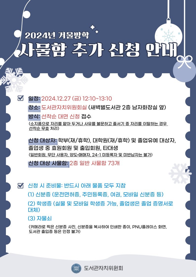 ❄2024년 겨울방학 사물함 추가 신청 안내❄