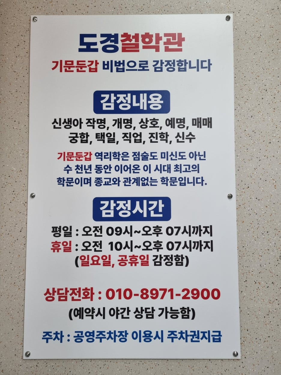 사주감정, 신생아작명, 개명, 상호, 아호, 궁합, 택일/결혼, 이사, 개업, 출생(제왕절게 수술일), 신수(운 기문둔갑의 학문으로 플어 드림), 부적(기문둔갑비법의 특별부적)