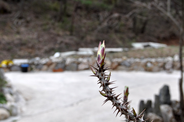 나무 젖가락만한 묘목이 세월을 머금더니 올해 처음으로 꽃망울을 보여주네요.