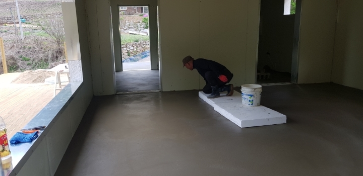 2틀에 걸쳐 바닥 미장을 끝냈어요.