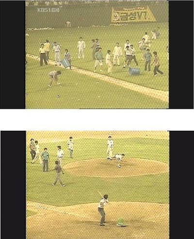 롯데 경기중에 시내에서 시위가 일어나 최루가스가 야구장으로 들어옴
