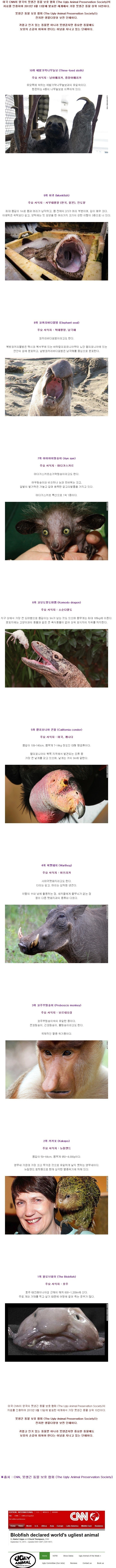 [스크랩] 전세계에서 제일 못생긴 동물 top10 작성자Show me the Messi|작성시간14.09.22|조회수102 목록 댓글 0 글자크기 작게가 글자크기 크게가 다음검색 스크랩 원문 : 이종격투기 현재 게시글 추가 기능 열기 북마크 공유하기 신고 센터로 신고 댓글 댓글 0 댓글쓰기 답글쓰기 댓글 리스트