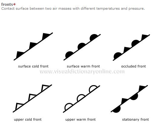 완성된 등압선은 몇 개의 표준 형태를 보인다. 저기압을 싸고 있는 곡선의 등압선들은 depression을 나타낸다. 만약 이들이 고기압을 둘러싼다면 그것을 지리적인 등고선상의 산맥 정상과 비슷한 모습인 anticyclone이다.