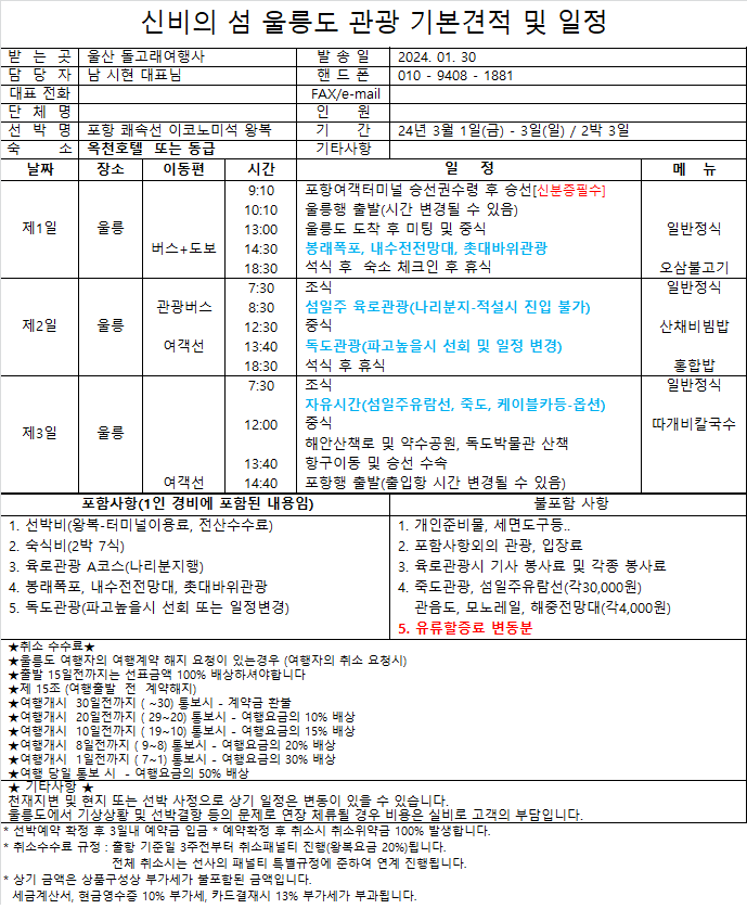 🐬가장빠른쾌속선 울릉도 독도 환상의섬 여행 🐬