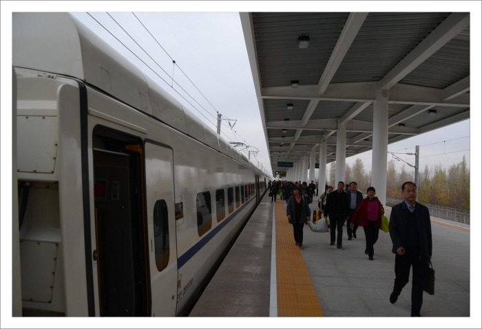 란저우로 돌아가기 위해 기차를 타러 가는 모습. 가욕관 남역에서 출발하여 약 4시간 정도 기차를 타고 이동을 해야 한다. 이번에 타보지 못한 탈것이 무엇이었더라?