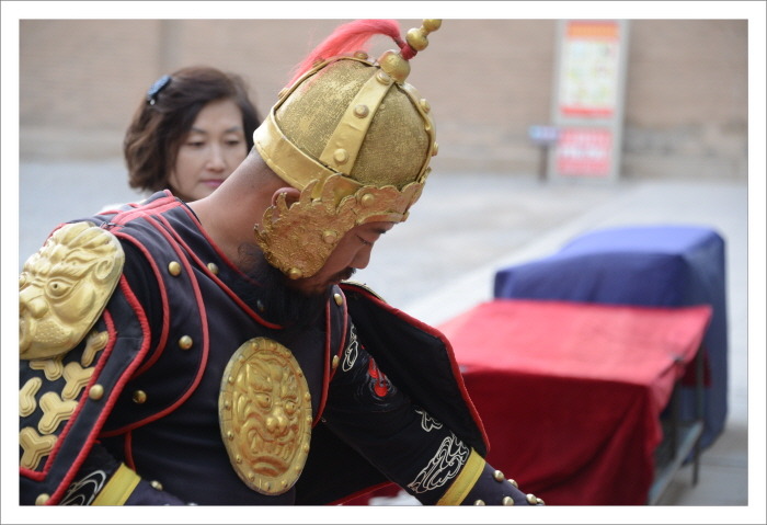 이곳에는 명나라 때 장수 복장을 한 사람이 있었는데 액세서리 등을 파는 사람이었다. 말하지면 잡상인이었는데 가욕관을 지키던 사람의 후예 치고는 다소 부끄러운 직업이 아닐까 한다. 생긴 것은 우락부락하게 장군의 풍모를 가지고 있었는데...