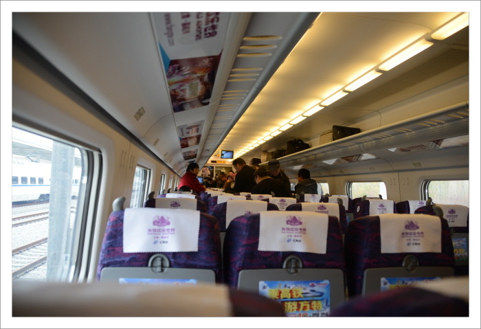 우리가 타고온 허씨에(和諧)호. 광저우 아시안 게임에서 슬로건으로 내걸었던 거 허씨에이다. 우리는 이 기차의 2호차에 탔었다. 쭉 뻗은 모습이 보기 좋다.