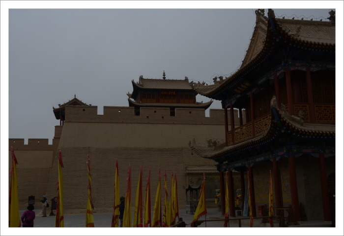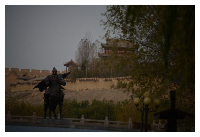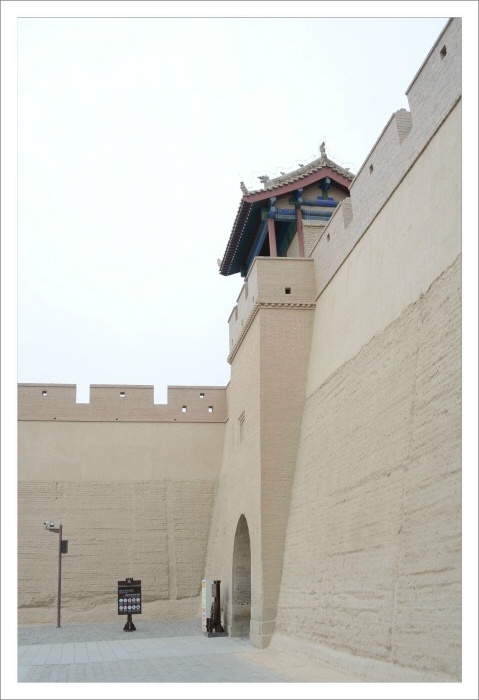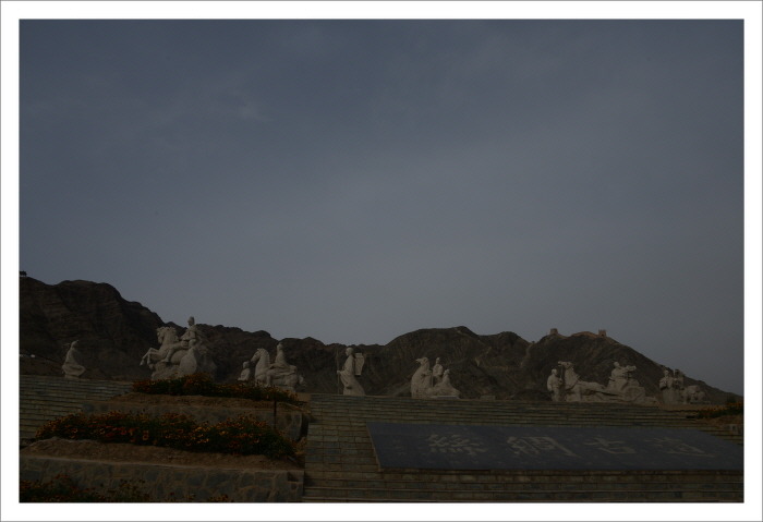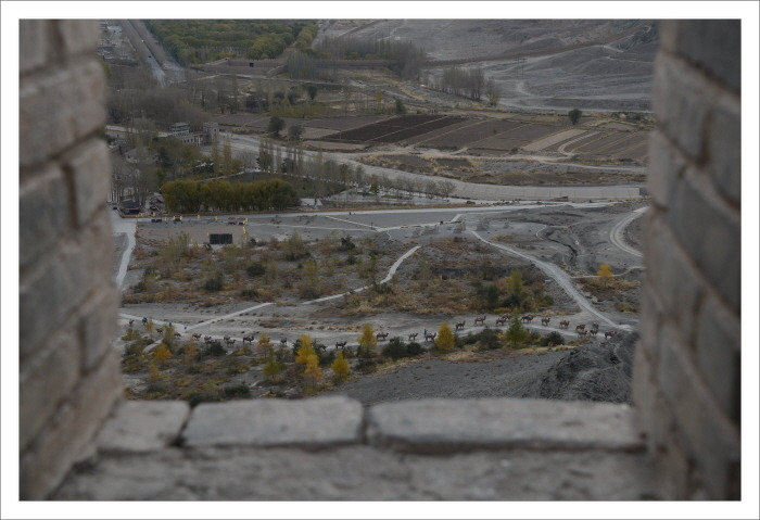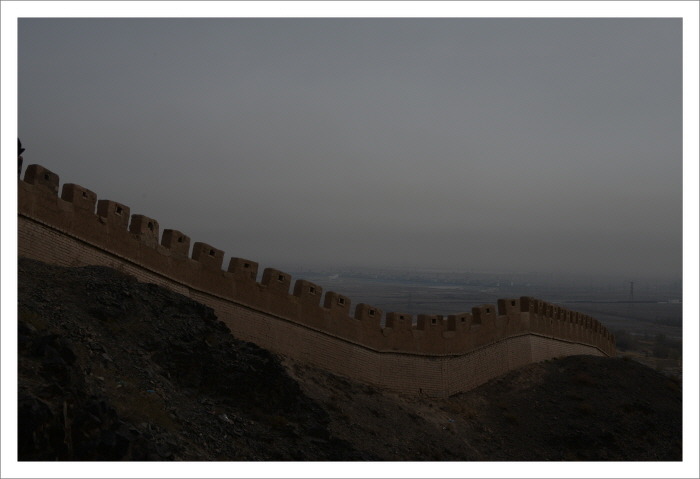 성가퀴 사이로는 대상들의 행렬이나 석각군 같은 조형물만 보이는 것이 아니었다. 신흥 철강도시라는 가욕관시에 전기를 공급하기 위한 화력발전소가 보였다. 작년 서안 북부지역에 비할 바는 못 되었지만 어제까지 있었던 돈황에 비하면 이곳은 정말 공기가 아주 안 좋은 편이었다.