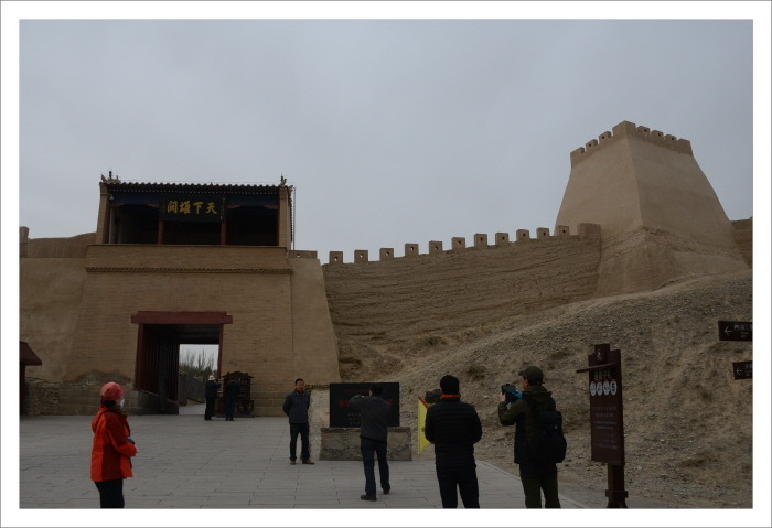 이번 여행 중에 가장 기대가 되었던 코스 중 하나인 가욕관이 이날의 첫번째 관람장소였다. 작년 당가촌처럼 너무 일찍 와서 출구가 열릴 때까지 기다려야 했다. 그 시간을 이용하여 가욕관임을 알려주는 글자가 있는 이곳에서 모두들 기념 촬영을 하느라 여념이 없었다.