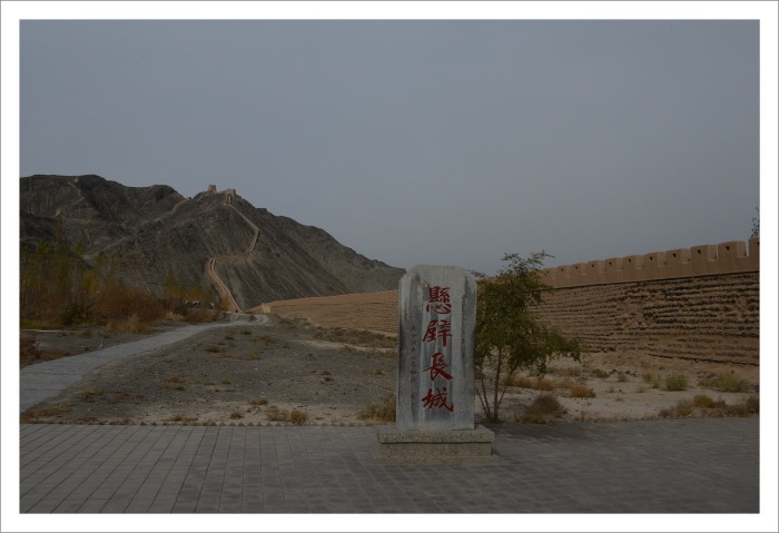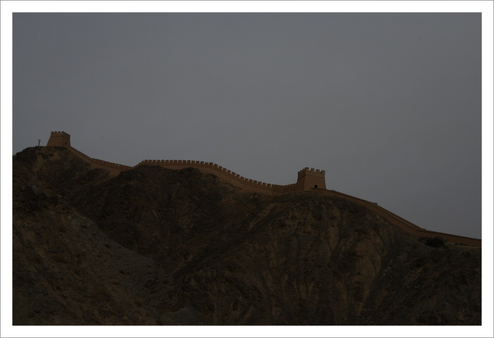 이곳 현벽장성은 만리장성의 서쪽 끝이다. 이 성벽이 가욕관과 이어지고 또 장성제일돈에 이르러 끝이 나는 것이다. 산 위로 용처럼 구불구불 이어진 성벽이 경이롭게 보인다. 이런 성벽을 6500km에 걸쳐 한 군데도 끊어지지 않게 쌓았다니...
