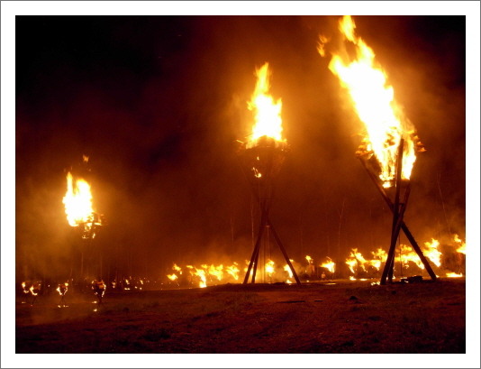 기왕에 물에 관련된 한자를 다루어 보았으니 이번에는 불과 관련된 글자들을 한번 살펴보도록 하겠습니다. 불꽃입니다. 한자로는 화(火) 또는 염(炎)이라고 하지요. 두 글자를 합치면 화염이 됩니다. 이 불은 인간에게 없어서는 안 되는 것입니다. 동양에서는 만물을 구성하는 가장 중요한 다섯 요소인 오행(五行)에 들어 있고, 서양의 신화를 보면 인간에게 이 불을 가져다 준 준 프로메테우스는 아직까지도 독수리에게 간을 쪼이는 벌을 받고 있지요. 이런 사실을 보면 동양이나 서양이나 모두 불이 얼마나 중요한 것인가를 알게 됩니다. 요즘은 옛날보다는 불을 관리하기가 많이 쉬워졌습니다. 요즘 가정 어디서나 불 수 있는 저 파란 불꽃은 색깔만 붉은색으로 바뀌고 불꽃의 수만 적당히(3개 정도로) 줄여서 표현 할 수만 있다면 옛날의 불 화(火)자랑 정말 닮게 됩니다. 위에서 말한 불꽃 모양을 일러스트레이션으로 표현하면 아마 이런 그림이 될 테지요. 맞습니다. 불 화(火)자는 바로 이런 모습을 형상화한 것입니다. 불 화(火)자의 갑골문-금문대전-소전 첫 번째 그림, 아니 갑골문의 자형은 정말 일러스트레이션의 그림과 똑같죠? 이런 불꽃이 더욱 격렬하게 타오르는 모양이 있는데 바로 불꽃 염(炎)자입니다. 이미 위에 화염이라는 말이 나왔었죠? 보통 두 글자로 쓸 때는 화염(火焰)이라고 하지만 한 글자로만 표현할 때는 염(炎)이라고 합니다. 불꽃 염(炎)자의 갑골문-금문-소전 모양 그대로 격렬한 불꽃이 높은 곳까지 치솟는 듯한 모습을 보이고 있습니다. 위의 사진은 요즘은 잘 볼 수가 없지만 옛날 전쟁을 할 때나 밤에 행사를 할 때 불을 밝히는 횃불입니다. 우리나라에서도 절찬리에 방송된 적이 있는 <용의 눈물>이나 <태조 왕건> 등의 드라마를 보면 밤 풍경에 많이 등장하였습니다. 그런데 이를 형상화한 글자는 원래 "주인 주(主)"자의 본래 글자였습니다. 주인 주(主)자의 금문대전-소전 불은 옛날에 아주 소중하게 다루어야 했습니다. 한번 꺼뜨리면 불을 새로 피우거나 불씨를 얻어오거나 해야 했기 때문입니다. 그래서 옛날에는 인간에게 가장 소중한 이 불의 최종 관리자를 주(主)라고 하였습니다. 집안에서는 주인, 나라에서는 임금. 마치 지금 가장 중요한 통신 시설이나 전기의 최종 통제권이 대통령에게 있는 것이나 마찬가지로 말이죠. 그래서 불을 관리하는 주인이라는 뜻에서 주(主)자는 주인, 임금이라는 뜻으로 쓰이게 되었습니다. 원래 불의 한복판에 있는 불을 나타내는 심지라는 뜻은 간단하게 앞쪽에다 불화 자를 붙인 형태의 심지 주(炷)자로 만들어서 뜻을 보존하게 되었습니다. 참고로 한 가지만 말씀드리자면 옛날에는 불이 뜨겁다고 해서 늘 그 기운이 왕성하게 살아 있다고 생각지 않았습니다. 그래서 (뜨겁기는 하지만) 그 쇠락해진 기운을 없애고 새로운 기운을 살리기 위해 일제히 불을 한번 껐다가 켜는 날을 정하게 되었습니다. 그것이 바로 유명한 개자추(介子推)의 고사와 혼합된 한식날입니다. 한식 때가 되면 겨울 기운은 완전히 사라져 하루쯤은 불의 기운을 빌리지 않아도 충분히 살 수가 있겠죠. 위의 사진은 화로(火爐)입니다. 화로는 우리에게는 잊을 수 없는 추억이 많은 물건입니다. 지금처럼 추운 겨울이면 집안의 필수품이었죠. 거의 유일하다시피 한 실내 난방 기구였으니까요. 옛날에는 거의 구들을 깐 온돌방에서 생활을 하였습니다. 보통은 밥을 짓거나 쇠죽을 끓이거나 할 때 난방을 같이 하게 됩니다. 그 불이 꺼지면 위와 같이 뜨거운 재를 화로에 담아 방으로 들여오면 난로가 되는 것입니다. 여기에 감자나 고구마, 밤을 구워 먹기도 하고 설 때는 떡가래를 구워먹기도 하였습니다. 노릇노릇 겉이 부풀어 터지기도 하는 가래떡은 정말 먹음직스러웠습니다. 그런데 화로의 윗부분의 벌건 재가 식으면 그때는 부젓가락을 가지고 안에 불이 다 꺼졌는 지 아직도 살아 있는 지를 확인해야 했습니다. 그것을 나타낸 글자가 바로 "다될 진(盡)"자입니다. 다될 진(盡)자의 금문-금문대전-소전 위의 글자에서 아래쪽의 그릇 명(皿)자가 화로입니다. 그리고 위의 포크 같이 생긴 것이 손이고, 손으로 들고 있는 것이 부젓가락입니다. 손과 화로 사이의 글자는 바로 불 화(火)자입니다. 불이 "다" 꺼졌는지 확인해보는 것이죠. 예나 지금이나 불을 다룰 때 가장 조심해야 할 것은 뭐니뭐니 해도 화재(火災)입니다. 불이 얼마나 크게 났는지 옆의 집까지 옮겨 붙어서 격렬하게 타고 있네요. 생각만 해도 정말 끔찍한 광경입니다. 옛날에도 지금과 마찬가지로 수재와 화재가 가장 무서웠습니다. 수재를 나타내는 글자는 옛 석(昔)자인데요. 밑의 일(日)자는 시간을 나타내는 장치이고, 위의 부분은 물결 모양으로 수재를 나타냅니다. 옛날, 하면 온 동네를 쓸어가다시피 한 쓰라렸던 수재를 떠올리게 되는 것이지요. 반면에 화재는 거의 집안에서 일어납니다. 그것을 나타낸 글자가 바로 "재앙 재(災)"자입니다. "재앙 재"자는 옛날에는 지금과는 달리 "灾"라고 썼습니다. 그야말로 집에서 불이 난 것을 나타내는 것이죠. 그러니까 재(災)자는 바로 화재를 나타내는 말이었습니다. 재앙 재(災,
