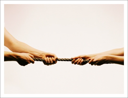 왼손(左)과 오른손(右)을 나타내는 자형 예로부터 한자에는 왼손과 오른손을 구분하여 쓴 자형이 보입니다. 손 수(手)자가 손가락 다섯을 다 표현한데 비하여, 위의 자형은 손가락이 포크 형태로 바뀌어 세 개씩밖에 없습니다. 그리고 처음에는 사진처럼 왼손과 오른손을 구분하여 표시하였던 것이죠. 이는 대체로 두 손을 다 표현하거나, 한 손으로 무슨 일을 할 때 이렇게 표현하였습니다. 지금의 「왼 좌」(左)자에는 이미 위처럼 왼손을 나타내는 글자만 남은 것은 없습니다. 공구로 추정되는 물건인 工자 모양을 쥔 손으로 대체된 지가 이미 오래되었습니다. 반면에 오른손을 나타내는 「또 우」(又)자는 지금까지도 남아 있습니다. 어느 순간 단독으로는 쓰이지 않게 되면서 취(取)와 제(祭) 등 글자의 일부로만 쓰이게 되었습니다. 「왼 좌」(左)자의 금문-금문대전-소전 「오른손[또] 우」(右)자의 갑골문-금문-금문대전-소전(위에 있음) 「오른 우」(右)자의 금문-금문대전-소전 어느 순간 오른손을 나타내는 글자는 또 우(又)자를 사용하지 않고 지금 현재 쓰는 우(右)자로 바뀌고 말았습니다. 이 글자는 우(又)자를 대체하기 위해 나타난 듯 우(右)자가 갑골문부터 보이는데 비해 금문부터 보이기 시작하고, 그나마 금문은 좌(左)자의 자형과 口의 모양만 다를 뿐임을 알게 됩니다. 손을 나타내는 부위가 슬슬 하나로 통일되기 시작하는 것입니다. 위의 설명대로 보자면 유(有)자는 원래 왼 손으로 고기를 든 형태입니다. 아래 사진처럼 말입니다. 그러나 위에서 말한 것처럼 한 손만 나타내는 것은 왼손 오른손의 구분이 없이 그냥 글자의 한 부분으로만 남게 되었습니다. 유(有)자도 원래 꼭 고기를 든 왼손을 나타낸 것이 아니라 뜻이 확장되어 고기를 든 손이 되었다가, 최종적으로 고기를 가지다의 뜻이 되었으며 마침내 지금처럼 그냥 가지다의 뜻으로 정착되게 된 것이지요. 「있을 유」(有)자의 금문-금문대전-소전 유(有)자의 각종 자형을 보면 손을 나타내는 요소가 모두 오른손을 나타내는 우(又)자의 형태를 띠고 있음을 알 수 있습니다. 벌써부터 오른손 왼손을 구분하지 않기 시작하였다는 것을 나타내는 것이지요. 아래 사진처럼 오른손으로 고기를 들고 제단에 올려놓는 것을 표현한 글자는 위에서 언급한 적이 있는 「제사 제」(祭)자입니다. 제단을 나타내는 「보일 시」(示)자를 빼면 바로 그 모습입니다. 실제 제(祭)자의 갑골문에는 「보일 시」(示)자가 없습니다. 「제사 제」(祭)자의 갑골문 고기를 나타내는 나중에는 月의 형태로 바뀌는 자형 및 오른손인 우(又)자의 중간에 있는 점 세 개는 생고기에서 떨어지는 핏방울입니다. 문자에서는 점 하나도 허투루 쓰지 않았음을 보여주는 것입니다. 양손을 그냥 표현한 것 외에 손은 또 무언가를 움켜쥐려고 하는 동작을 보일 수도 있습니다. 그 글자가 바로 「손톱 조」(爪)자입니다. 움켜쥐려는 손의 끝에 손톱이 있기 때문에 아마 그런 훈을 붙인 것 같습니다. 그래서 조(爪)자는 뭔가 채집 등 활동적인 모양을 하는 손을 나타내는 글자에 많이 쓰입니다. 대표적인 글자가 채(采)자입니다. 나무에서 열매를 따는 모양을 나타낸 것입니다. 그러나 조(爪)자는 사실 위쪽에 있는 손을 나타내는 경우가 많습니다. 「손톱 조」(爪)자의 금문-금문대전-소전 두 사람이 줄다리기를 하는 모양입니다. 아래의 간단한 그림처럼 서로 「내 것!」「내 것!」하면서 다투는 모양입니다. 이런 모양을 나타낸 것이 바로 「다툴 쟁」(爭)자입니다. 「다툴 쟁」(爭)자의 갑골문-소전 원래는 쇠뿔로 보이는 물건을 가지고 두 사람이 (한 손으로) 다투는 것이었는데 나중에는 모양이 간략화하여 그냥 막대 모양으로 바뀐 것이죠. 두 사람이 곱게 포장한 선물을 주고 받는 흐뭇한 광경입니다. 설 추석 등 명절 때, 그리고 입학 졸업, 생일 등 인생에 있어서 중요한 행사 때면 사람들에게 선물을 받기도 하고 또 기대를 가지고 은근히 기다리던 설렘을 잊을 수가 없습니다. 사진을 보면 왼쪽에서 오른쪽으로 이미 선물을 건넨 것인지 아니면 오른쪽에서 왼쪽으로 막 선물을 주려는 것인지 알 길이 없습니다. 이렇게 둘이서 물건을 주고받는 한자는 바로 「받을 수」(受)자입니다. 「받을 수」(受)자의 갑골-금문-소전 위 손(爪)과 아래손(又)자 사이에 놓인 형태는 문자학자들 사이에 아직도 채반일 것이다, 배를 사이에 두고 물물교환을 하는 것이다는 등 이설이 많습니다. 그러나 여기서는 「무엇인가」가 중요한 것이 아니라 그 주고받는 「무엇」이 중요하다고 생각합니다. 이 글자 한 자로 옛날에는 주는 것과 받는 것을 모두 표현하였습니다. 말하자면 방향이 없었던 것이지요. 그러나 이렇게 쓰다보니 후대로 가면서 자꾸만 뜻이 분화되고 새로운 개념이 생겨나자 준다는 뜻은 글자를 달리하게 되었습니다. 이 글자의 앞에 손 수(手, 扌)자를 하나 덧붙여서 뜻을 분화 시킨 것이지요. 그 글자가 바로 「줄 수」(授)자 입니다. 수(授)자에는 손을 나타내는 요소가 셋입니다. 이런 예는 다른데서도 얼마든지 더 찾아볼 수 있습니다. 황혼을 배경으로 멋진 록 클라이밍, 아니 우리말을 써야겠죠?