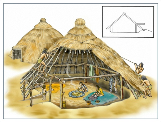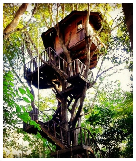 의식주 가운데 의(衣)와 식(食)에 관해서는 앞에서 이미 좀 알아보았습니다. 여기서는 사람들의 주거 환경과 관련된 한자들을 한번 살펴보도록 하겠습니다. 사람들은 신체적 조건만 가지고 비교를 하면 자연에서 동물들과 함께 살아가기에는 경쟁력이 많이 떨어집니다. 민첩함이나 날카로운 이빨, 손톱 등은 물론이고 털이 나지 않은 몸으로 아무 데서나 함부로 살 수도 없었습니다. 게다가 성인이 되어 어른의 도움이 필요없을 정도까지 자라려면 최소한 10년 이상은 걸렸지요. 날이 따뜻해지는 봄부터 가을까지는 그럭저럭 살아갔지만 혹독한 겨울에는 사냥으로 얻은 짐승의 가죽으로 옷을 해 입어도 힘들기는 마찬가지였습니다. 게다가 호시탐탐 사냥감으로 서로의 목숨을 노리는 짐승들이 도처에서 도사리고 있는 위험한 자연환경에서는 더욱 그랬지요. 그래서 인간들은 동물들의 침입이나 습격을 피할 수 있고 추위도 막아줄 수 있는 안락한 거처를 찾게 되었습니다. 집을 지어서 공동생활을 하기 전까지는 동물들의 습격을 효과적으로 피할 수 있는 높은 곳이 적격이었습니다. 그래서 사람들은 나무에 올라가게 되었습니다. 무슨 목적이 있어서 저렇게 나무 위에 올라갔는지는 모르겠지만 최초에 인간들이 나무에 올라간 것은 아마 망(望)을 보기 위함이었을 것입니다. 망(望)은 앞에서 이미 나왔듯이 눈높이보다 높은 곳을 바라보는 것입니다. 사람들이 다른 동물들보다 뛰어난 점이 바로 이런 지형지물을 이용할 수 있는 높은 지능이라고 할 수 있지요. 이렇게 망을 보러 나무에 올라간 사람을 나타낸 문자가 바로 '탈 승(乘)'자입니다. 탈 승(乘) 갑골문-금문-금문대전-소전-해서 갑골문에서는 '탈 승(乘)'자가 생겨난 모습을 간단하면서도 명료하게 보여주고 있습니다. 큰 '나무(木)' 위에 어른[成人: 大]이 올라가 있는 모습입니다. 그러다가 금문부터는 사람의 몸에 두 발을 그려넣었습니다. 발은 평지를 딛고 서 있는 데도 중요하지만 나뭇가지 같은 것을 밟고 서 있으려면 넓고 편편한 발바닥이 매우 중요하다는 것을 강조한 것이지요. 그러다가 해서에서는 사람과 나무가 한데 합쳐져서 '벼 화(禾)'자 같은 형태가 되었습니다. 양 발바닥을 나타낸 요소는 '북녘 북(北)'자처럼 바뀌었죠. '탄다'는 훈은 나무를 올라탄다는 뜻에서 나온 것인데 나중에는 '오른다'는 뜻으로 차츰 바뀌어 수레를 타거나 차를 탄다는 뜻으로 바뀌었고, 아주 일찍부터 아예 수레를 헤는 단위로까지 쓰이게 된 것입니다. 참고로 승(乘)은 보병 72명을 딸린 전차로 옛날의 군대 편제 단위였습니다. 만 승은 전차[兵車] 1만 대에 보병 72만을 보유한 천자의 나라만이 가질 수 있었습니다. 제후의 나라에서는 전차 천 승에 7만 2천명의 군대만 보유할 수 있었지요. 전국시대에 들어와서는 그런 규정이 유명무실해지긴 합니다만. 나무에 올라본 사람은 그곳이 짐승들의 습격으로부터 자유로운 곳임을 알게 되었을 것입니다. 그래서 사람들은 나무 위에서 생활을 하는 방법을 생각해내게 되었고 이를 실천에 옮겨서 아예 새처럼 나무에다 집을 지어 살게 되었습니다. 전세계적으로 흥행에 크게 성공을 하였고 우리 나라에서도 많은 인기를 끈 애니메이션 <타잔>에 나오는 나무집입니다. 타잔의 부모가 선상 화재로 난파된 배에서 겨우 살아나 짐승들의 습격을 피하여 지은 집입니다. 그러나 영화에서 타잔의 부모는 이런 노력에도 불구하고 나무를 잘 타는 동물인 표범의 습격을 받고 죽고 맙니다. 타잔은 아기를 잃은 암 고릴라에 의해 구출되고 길러지지요. 요즘도 나무 위에 지은 집이 저렇게 있습니다만 온전히 주거를 위한 목적으로 지은 것은 아닙니다. 현대의 바쁜 일상에서 벗어나 잠시 쉬고 싶을 때 찾게 되는 자연 휴양지 같은 곳에서나 볼 수 있는 광경입니다. 인간에게 짐승의 습격을 피해 나무에서 살도록 인간을 가르친 성인(聖人)이 있습니다. 성(聖)자는 글자에서 나타나듯이 귀(耳)와 입(口)이 강조된 땅 위에 서 있는 사람입니다. 남다른 청력으로 보통 사람보다 먼저 위험을 감지하여 입으로 다른 사람들에게 알려 위기 상황에서 벗어나게 할 수 있었던 사람이 바로 성인이었던 것입니다. 사람이 짐승의 습격을 피할 수 있도록 나무에서 살게끔 가르친 성인은 유소씨(有巢氏)입니다. 소(巢)자는 나무 위에 둥지를 튼 새집입니다. 새 둥지입니다. 한 개도 아니고 3개나 있는 것을 보니 새들의 아파트 같습니다. 인간들만 군집(羣集) 생활을 하는 것이 아니지요. 집(集)자는 원래 나무 위에 새(隹)가 세 마리 있는 것을 표현한 글자인데 후대로 오면서 한 마리로 준 형태라고 했습니다.(『이미지로 읽는 한자』 314쪽 참조) '둥지 소(巢)'자는 나무 위에 새집이 있는 것을 나타낸 글자입니다. 이를 먼저 일러스트레이션으로 보고 이어서 자형의 변천 과정을 살펴보도록 하겠습니다. 나무 꼭대기에 새가 둥지를 튼 모양입니다. 위의 모양만 가지고는 어디까지나 도화(圖畵) 즉 그림 수준에서 벗어나지 못합니다. 둥지 소(巢) 금문-금문대전-소전-해서 금문은 위 일러스트레이션을 더 간략화해서 표현하였습니다. 그림과 문자의 차이를 여기서 볼 수 있습