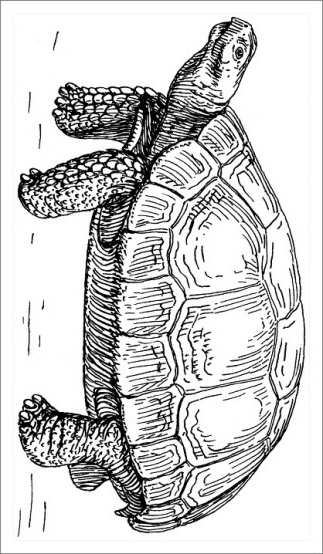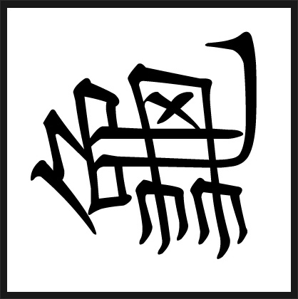 이 거북은 한자로 龜라고 합니다. 음은 귀, 구, 균 세 가지로 납니다. 귀는 말 그대로 거북이라는 뜻으로 쓰입니다. 구는 원래 서역의 구자국(龜玆國)이라는 나라를 표기할 때 음차하면서 생긴 발음입니다. 구자국은 실크로드 상에 있는 사막 도시인데 지금은 쿠처(庫車)라고 합니다. 구자-쿠처, 지금도 음이 비슷하지요? 그런데 우리나라에서는 엉뚱하게 지명은 물론이고 인명으로 쓸 때도 무조건 "구"라고 읽을 것을 강요하다시피 합니다. 구미, 구암, 영구 같은 경우가 대표적이지요. 그러나 지명이라도 실제 유래가 거북과 관련이 있으면 귀라고 읽어주는 것이 맞습니다. 구미(龜尾)는 거북 꼬리 모양이니 귀미가 맞고, 구암(龜巖)도 거북 바위에서 유래 하였으니 귀암이 맞습니다. 그러나 오랜 세월 그렇게 써왔으니 되돌리기가 힘들지요. 다만 한자에 대한 식견이 있는 사람들은 원리가 그렇다는 정도는 알아두는 것이 좋겠습니다. 그리고 균으로 읽힐 때는 갈라지다, 터지다라는 뜻을 가지고 있지요. 『장자』에 대대로 세탁업에 종사하면서 물에 오래 손을 담가도 손이 트지 않는 약을 개발한 사람의 이야기가 나옵니다. 이렇게 손이 터지지 않는 약을 "불균수지약(不龜手之藥)"이라고 합니다. 음은 그렇다 치더라도 이런 뜻이 생겨난 것은 거북 등 모양이 그렇게 갈라진 데서 나왔습니다. 가뭄 끝에 논이 마르면 뉴스에서 "거북 등처럼 말라서 갈라진 논"이라고 그러잖아요. 그런데 이 거북 귀자는 머리가 위로 가고 등이 오른쪽으로 가도록 세워놓은 모양입니다. 옛날에는 노트가 요즘처럼 가로쓰기가 아닌 죽간(竹簡), 목독(木牘) 같은 세로쓰기 노트였거든요. 가로쓰기를 할 경우야 가로로 긴 것도 얼마든지 그려내겠지만 세로 노트에 가로로 길게 쓰기는 불편하기 때문에 이렇게 변형된 것이지요. 말(馬)과 코끼리(象), 돼지(豕) 같은 동물을 나타내는 글자가 모두 세로로 세워진 글자들입니다. 반면 원래 세로로 길게 생긴 글자들은 눕힐 필요가 없겠죠? 식물들을 나타내는 글자들이 그 예들인데, 벼(禾)와 나무(木), 꽃(華) 등과 같은 것이 있습니다. 그럼 거북을 한번 세워볼까요?