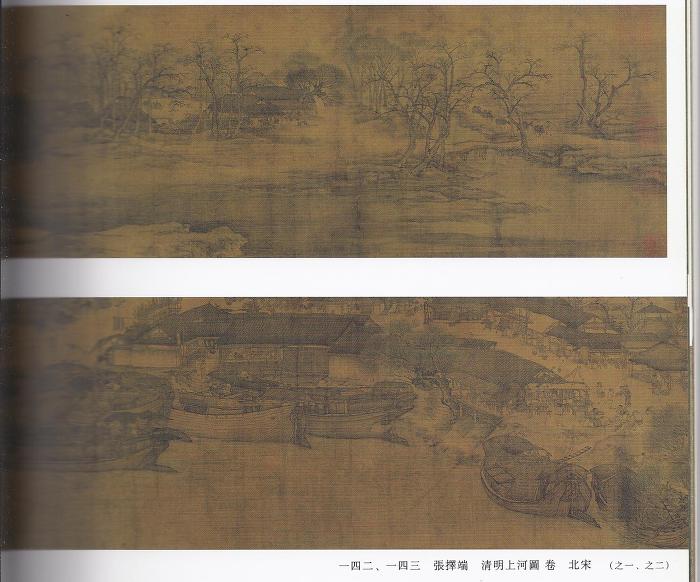 북송의 수도이던 변량(개봉)의 청명절 때 변하 및 그 양쪽 강 언덕의 도시 풍광을 그렸다. 전체 그림은 모두 3단으로 구분된다.