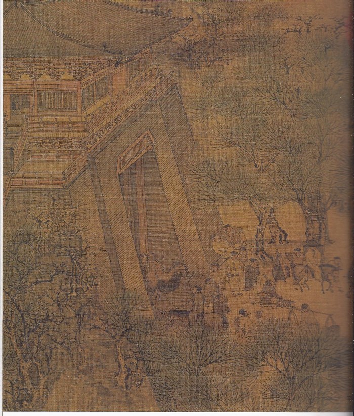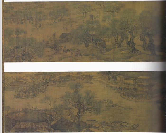 첫째 단은 도시 교외의 풍광 즉 촌락과 숲 및 성묘를 마치고 도성으로 돌아가는 사람을 그렸다.