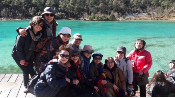 점심을 먹은 후 버스로 그리 멀지 않은 곳에 위치한, 옥룡설산의 눈이 녹아 흘러내려 만들어낸 에메랄드빛 인공호수 백수하(白水河)를 찾았다. 백수하는 석회암 지형인 백수대(白水臺)를 본 떠 계단식 인공 폭포를 만들어 놓은 곳으로 만년 설산의 협곡에서 내려오는 차가운 빙하수가 옥빛을 띠며 흐르고 있어 마냥 신비롭게 보이며, 마치 사천성(四川省)의 구채구(九寨溝)를 연상케 한다고 하여 ‘소구채구(小九寨溝)’로도 불린다.