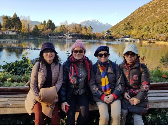 옥천(玉泉)이라고도 알려진 흑룡담은 옥룡설산의 만년설이 녹아내린 물이 고인 호수 공원으로, 공원 안에 있는 건축물들은 그 연원이 명청(明靑) 시대로 거슬러 올라간다. 가장 유명한 오봉루(五鳳樓, 1601)는 복국사(福國寺)로부터 일부를 옮겨와 조성한 것으로, 운남성에서 가장 중요한 역사기념물로 지정되기도 하였다. 마침 우리가 흑룡담에 도착한 때는 석양이 막 질 무렵이라 한결 고즈넉한 분위기를 자아내었다.