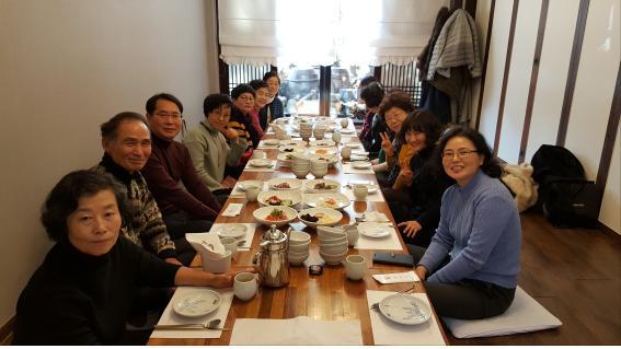 사흘을 쉬고 난 후 중국에 있을 때 미리 약속한 뒤풀이 모임을 정현숙 사모님의 주관 하에 한식당 비원에서 가지게 되었다. 사흘을 푹 쉬어서 그런 지 모두들 여행 때보다는 생생한 모습으로 나타나셨기에 가만히 안도의 숨을 쉬며 또 다음 여행을 머리에 그려 보았다.