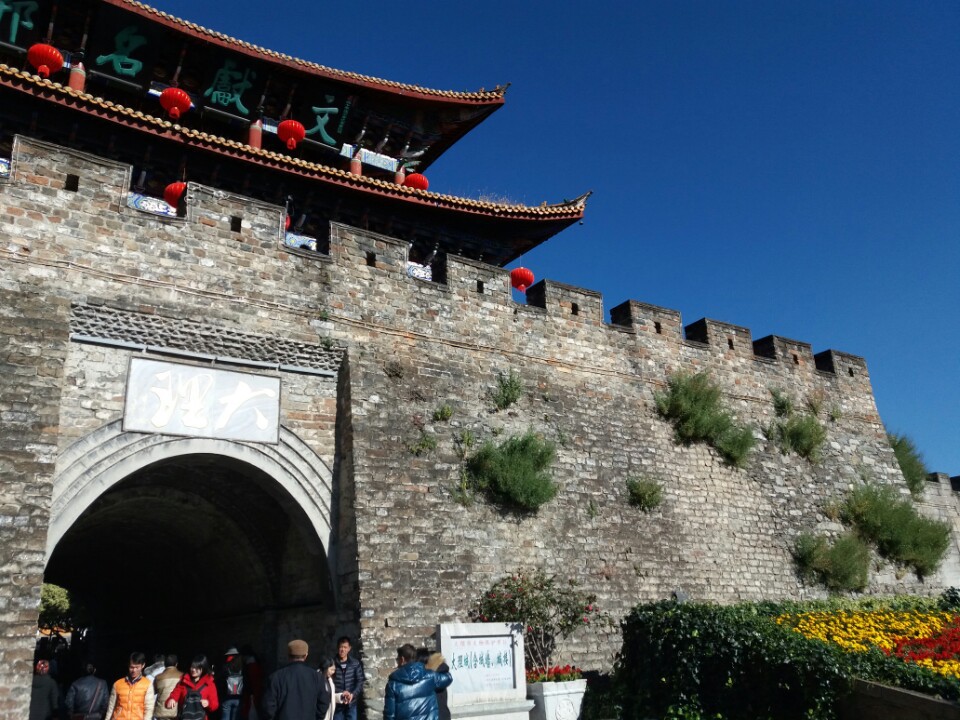 [대리고성의 남문. 위쪽에‘문헌명방(文獻名邦)’이라 쓴 편액이 걸려 있는데, 이 글씨는 청나라 강희 연간에 운남제독(雲南提督)을 지낸 편도(偏圖)가 쓴 글씨이다.‘文’은 ‘전적(典籍)’즉‘역사적으로 가치가 있는 문헌’을, 獻’은 ‘명망이 높은 인물’을 가리키며, ‘名邦’은 ‘이름난 지역’을 의미한다. 이 사진은 정호선 선생님께서 찍었다.]