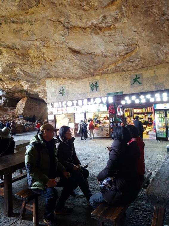 [소규모의 동굴 음악회가 열렸다는 웅사대청(雄獅大廳). 왼편의 커피점에서 몇 잔의 커피를 사서 나눠 마셨는데 의외로 맛이 괜찮았다.]