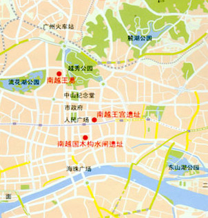 文帝行璽 絲縷玉衣 虎節-王命命車途 "중국 광둥성 광저우에 위치한 南越王墓. 웨슈공원[越秀公园] 서쪽의 샹강[象岗]지역에 위치하며 링난[岭南]지역에서 가장 오래된 대형 채색 석실묘이다. 전부 7개의 석실이 있으며 지하 20m 깊이에 있다. 1983년 6월에 발견되었다. 묘의 주인은 남월(南越)의 개국군주인 조타[赴佗]의 손자인 제 2대 남월(南越) 국왕 赴眛이며 그의 시신은 금으로 수가 놓여진 수의로 싸여 있다. 출처;http://www.gznywmuseum.org/ |