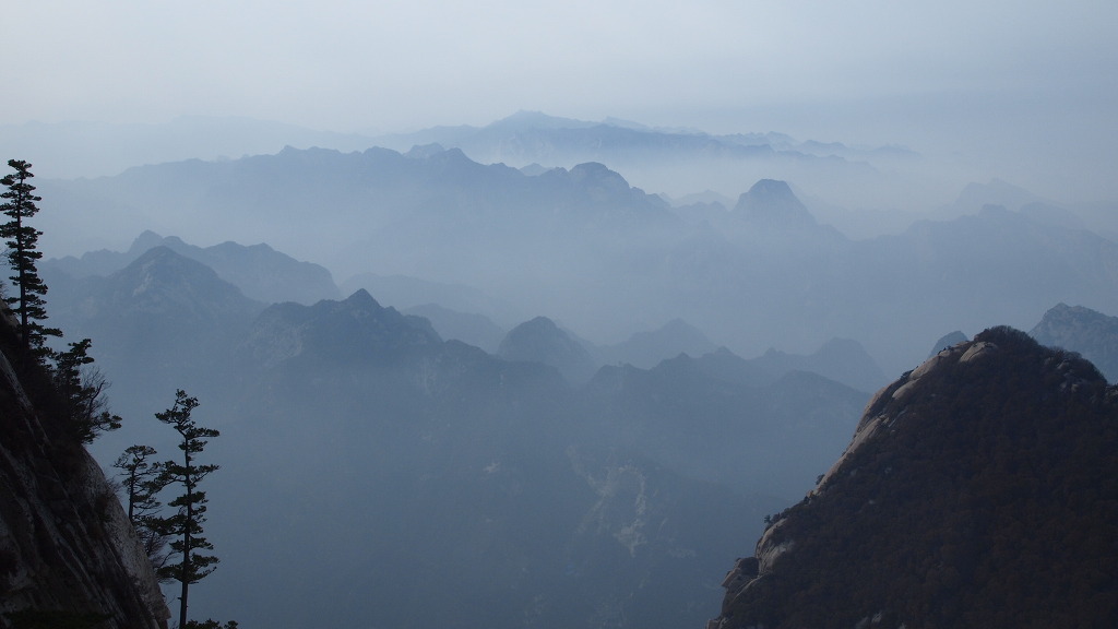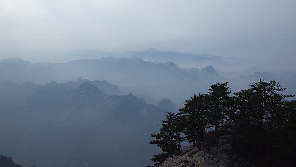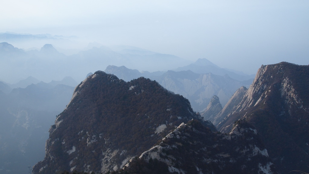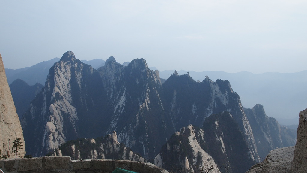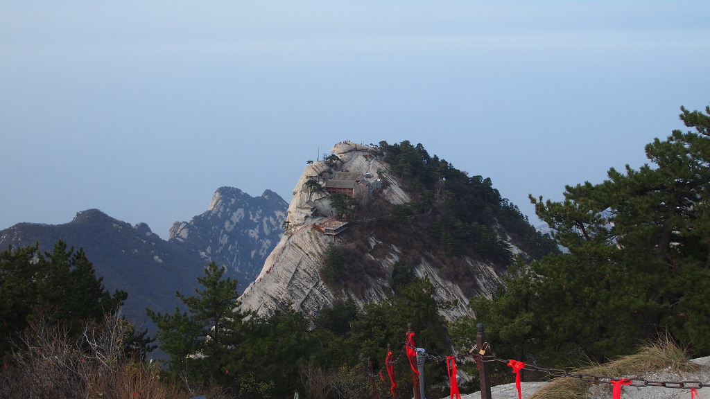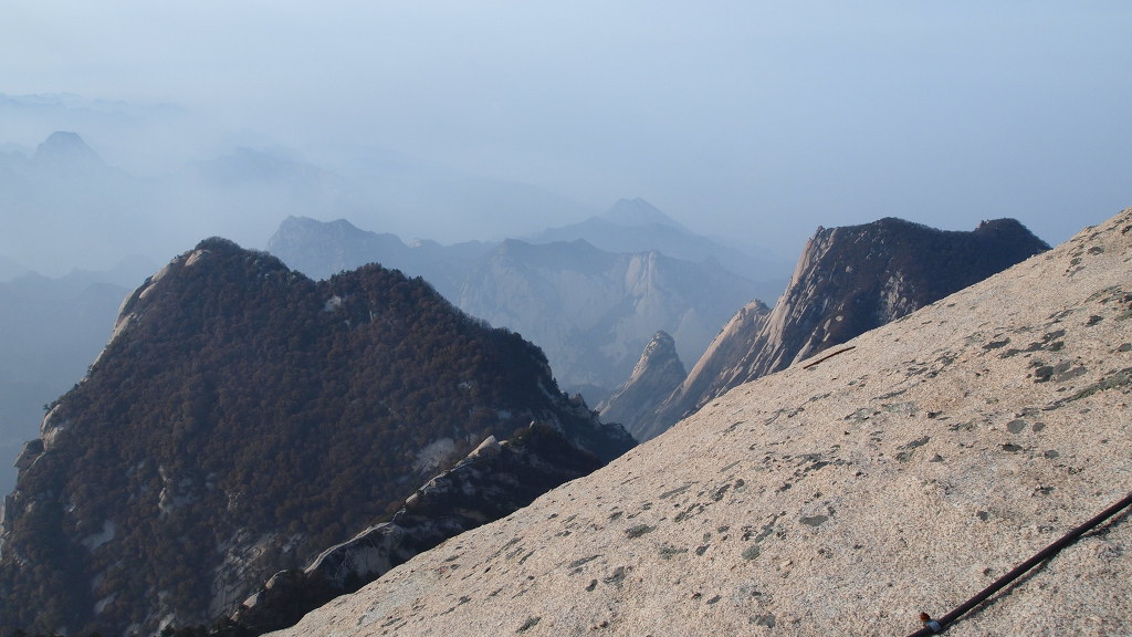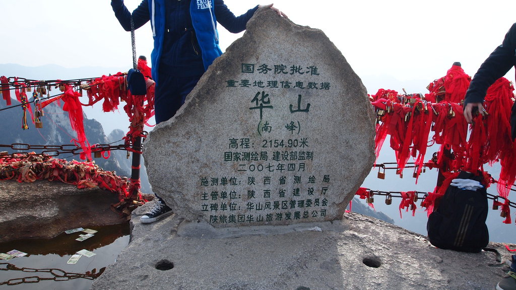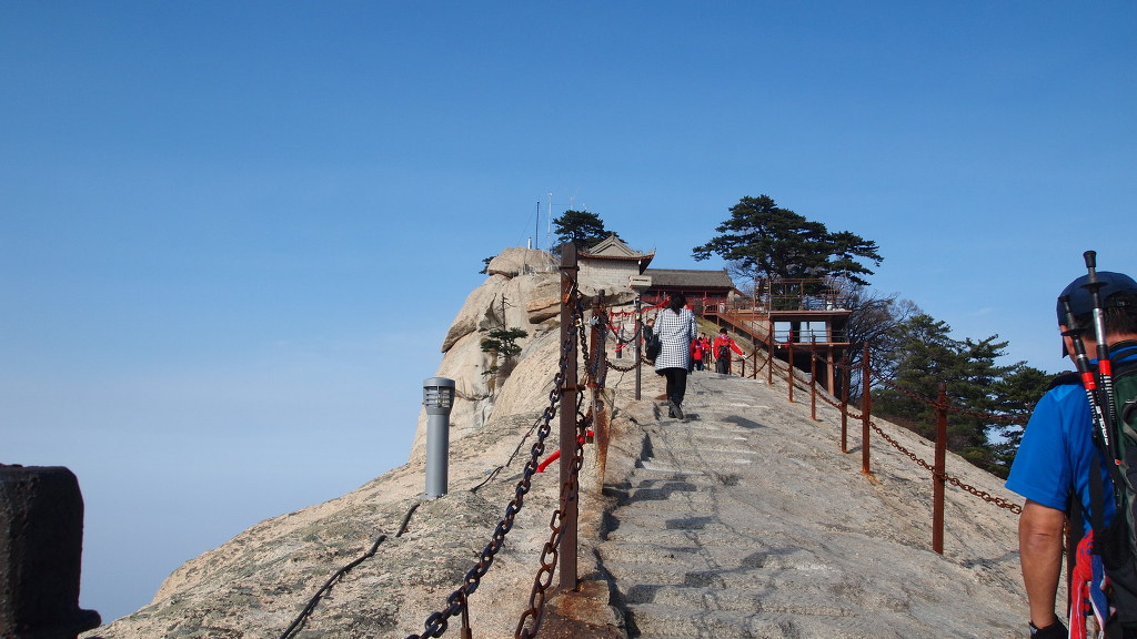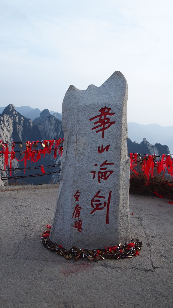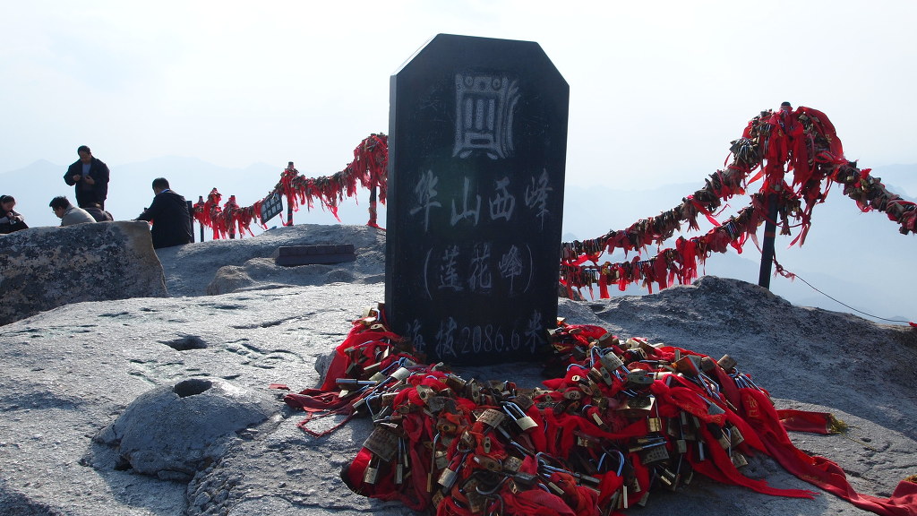 ▲남봉 정상-해발 2154.9m로 기록되어 있다. 화산의 주봉이다. 남봉에서는 사방이 두루 보이는 말 그대로 일망 무제다. 여기 남봉아래 남측 단애에는 화산의 유명한 장공잔도가 설치되어 있다. 중국인들의 기발한 생각들...