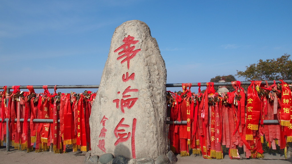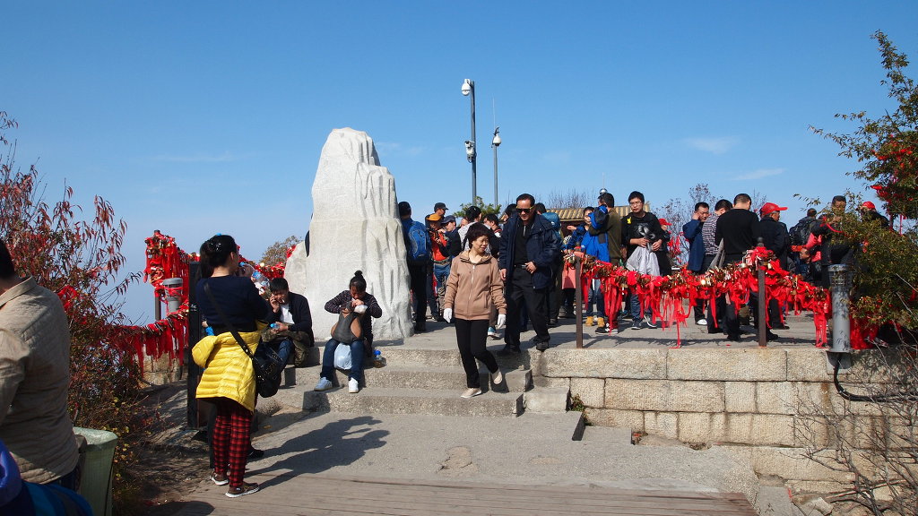 정상에는 수많은 인파로 발 들여 놓을 틈도 없다. 정상석 앞에서 기념 촬령을 하려 했지만 차례가 오지 않는다. 하는 수없이 그냥 사진만 담는다. 김용이 쓴 "화산논검" 표지석을 물끄러미 쳐다만 보다가 발길을 돌리려는데 갑자기 공간이 나왔다. 빠르게 셧타를 누룬다.