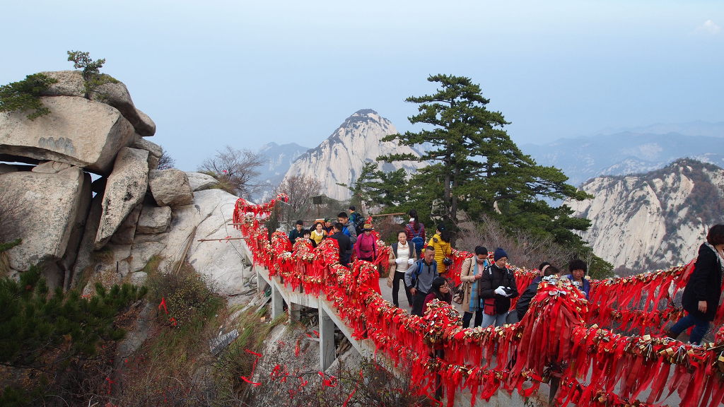 ▲중국의 높은 산에는 어디를 가도 이런 모습이 있다. 이것은 사랑의 자물쇠라나?...