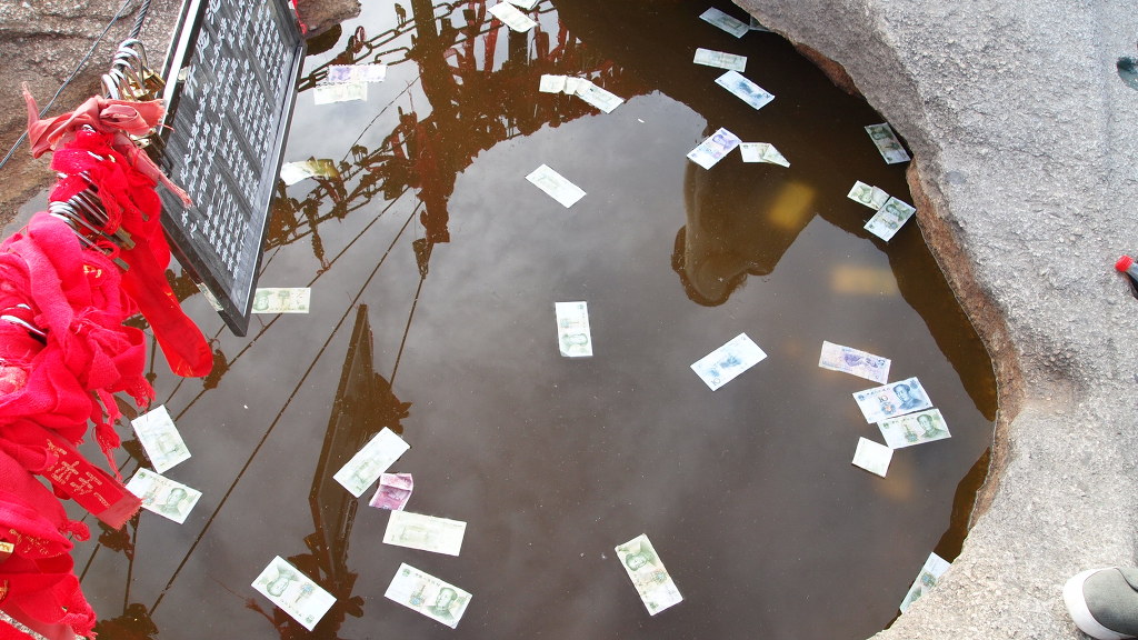 그리고 정상에는 물이고인 웅덩이가 있다. 부산 금정산의 금샘처럼, 이곳에도 물이 고였는데 중국인들은 이곳에다 돈을 던져 넣고 있었다. 그들과 우리의 생각은 다르겠지만 그 돈을 긁어서 모으면 제법될 듯하였는데...