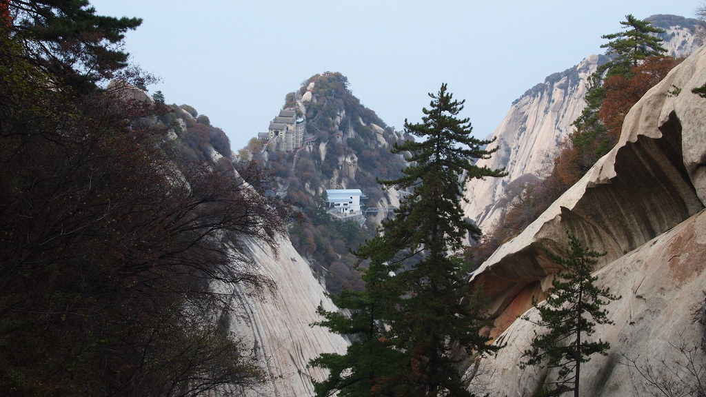 ▲올라가며 바라본 서봉[일명 연화봉]이다. 거의 80도가 넘는 깍아지른 듯한 단애, 이래서 이곳 화산이 중국의 암벽등반의 전초기지 인듯 하다.