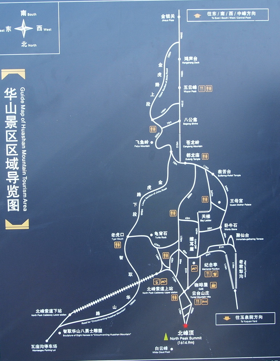 먼저 화산 동문에서 북봉 케이블카를 타고 북봉아래로 오른다. 이는 시간이 없는 당일 코스 일때 적용한다.